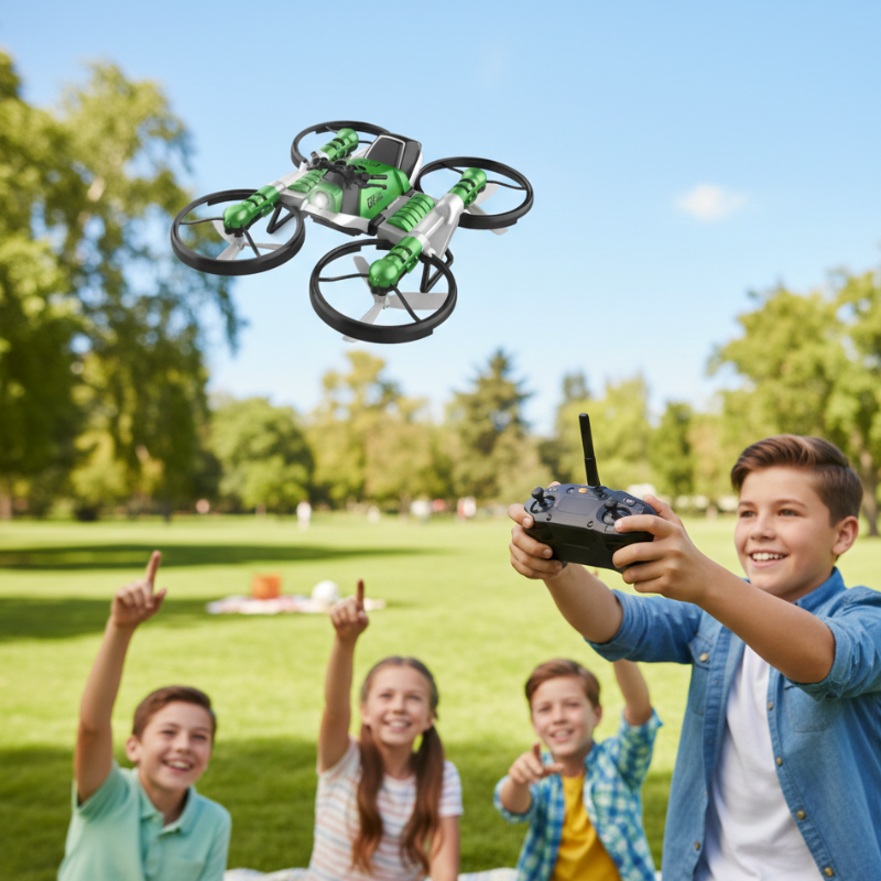 Mit dem Emkido™ Sky Rider – ferngesteuerten Drohnen-Bike – wird Spielen zum Erlebnis! Dieses aufregende 2-in-1-Spielzeug verwandelt sich vom schnellen Rennrad zur faszinierenden Flugdrohne und bietet Kindern so das Beste aus beiden Welten in einem leistungsstarken Design.
